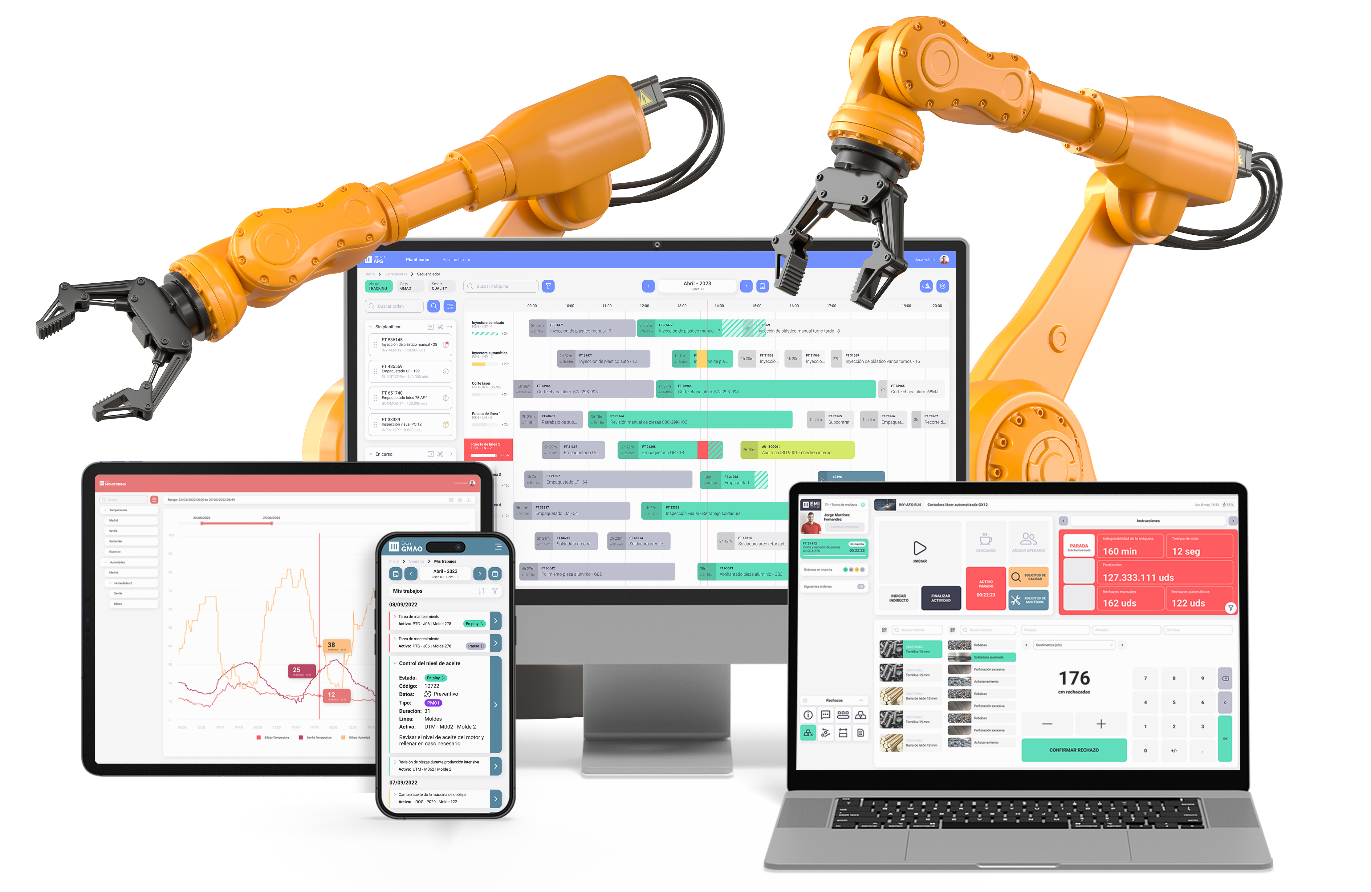 La fabricación de componentes exige precisión, repetitividad y una coordinación óptima entre máquinas, materiales y operarios. EMI Suite 4.0 aporta visibilidad en tiempo real del proceso productivo, controla la calidad en cada etapa y optimiza los tiempos de ciclo. Con ello, las plantas mejoran su eficiencia, reducen rechazos y garantizan la fiabilidad de cada pieza fabricada.