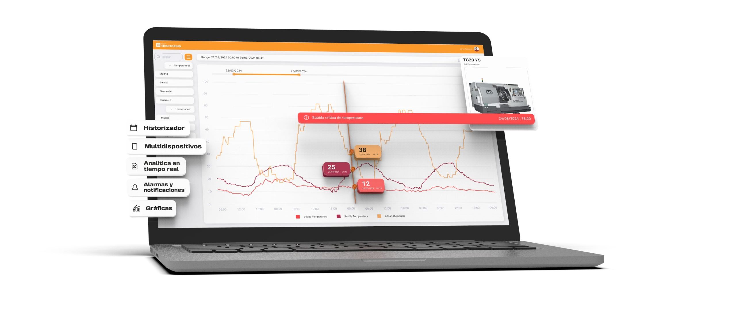 Consulta los datos provenientes de tus máquinas desde cualquier dispositivo. Conoce en tiempo real el arranque/paro de instalaciones, perdida de rendimiento, cantidades producidas, variables de proceso…